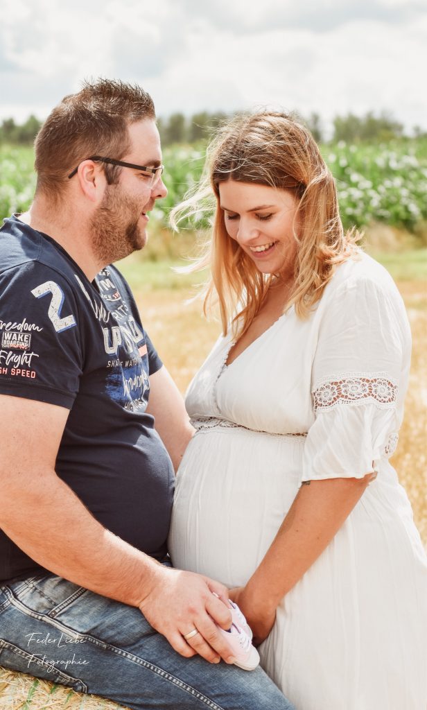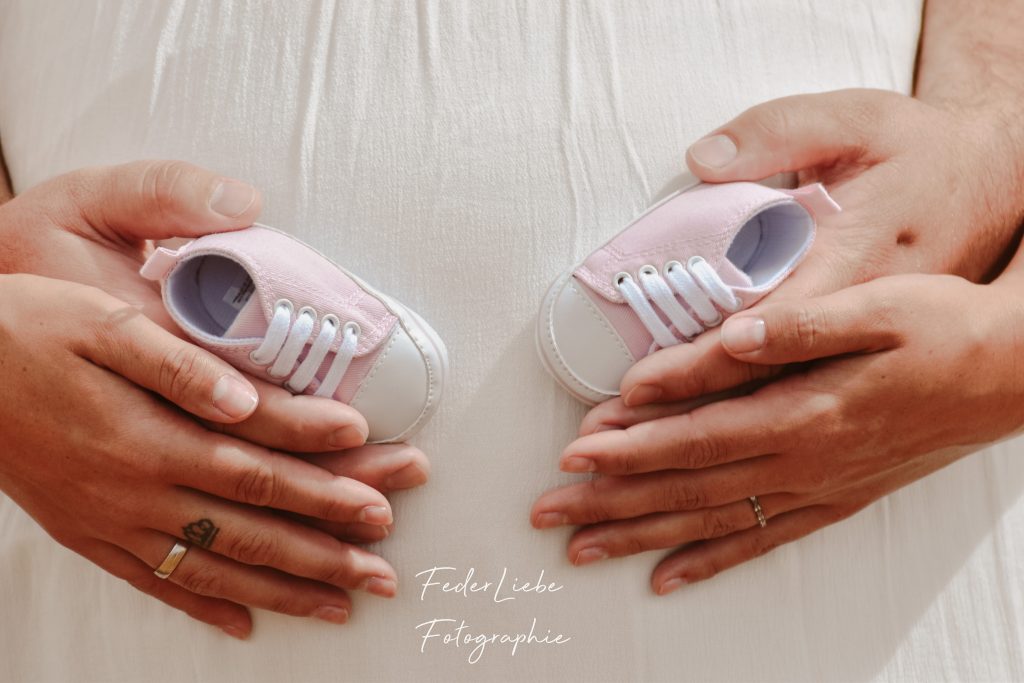 Der beste Zeitpunkt für ein Babybauch-Shooting ist 4-6 Wochen vor der Geburt. Dein Bauch ist nun schön rund; perfekt diesen Moment noch einmal festzuhalten.